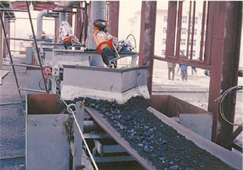 電液動犁式卸料器廣泛用于礦山、冶金、電場、煤場、集運站、港口碼頭等輸送機的分段卸料。液動犁式卸料器是安裝在膠帶輸送機的中間架上,執(zhí)行卸料及控制物料輸送流量、流向的機械產(chǎn)品,能將交代輸送的物料均勻、連續(xù)卸入料斗或需要的場所。本卸料器增叫了可變槽角、副犁刀等,并改用電液推桿做動力源,克服了老式卸料器犁料不盡、刮膠帶以及過載能力差,常燒毀電機,頂彎絲杠,機械易損壞等缺點。
