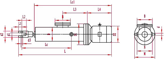 DYTZ整體直式電液推桿外形尺寸及安裝尺寸: