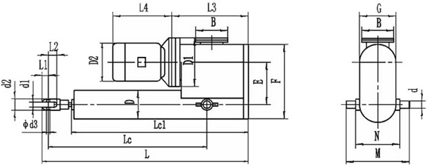DYTP平行式電液推桿外形尺寸及安裝尺寸:
