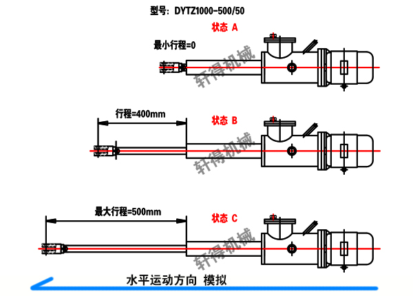 首先給大家舉個例子,電液推桿型號為:DYTZ1000-500/50,相信大家看到這個型號就會了解這是什么樣的電液推桿,大概的參數是什么,如果有不了解的,請點擊文章最下方的相關文章進行了解,大家請先看下面的模擬圖: